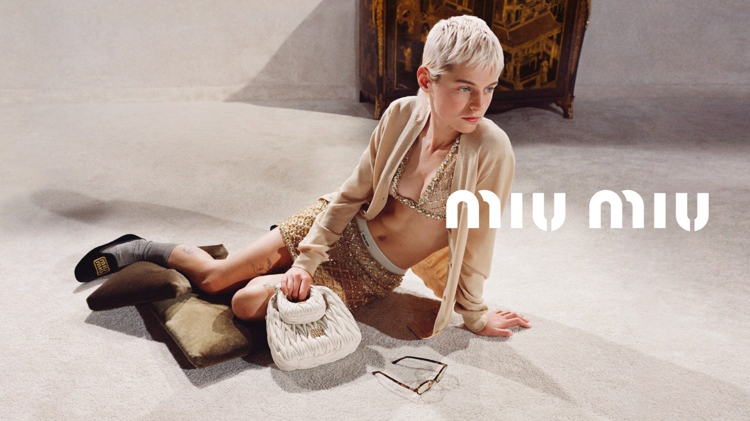 mongolsk stjal Miu Miu krem 4R2LJ495 klar til å ha på